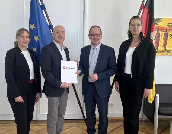 Den offiziellen Bewilligungsbescheid übergab der Niedersächsische Wirtschaftsminister Grant Hendrik Tonne am 2. März 2026 in Hannover persönlich an WLG-Geschäftsführer Mario Leupold, Projektleiterin Christine Benecke und Kerstin Helm von der WLH Wirtschaftsförderung im Landkreis Harburg GmbH mit Sitz in Buchholz i.d.N.. Die WLH ist Partner in diesem Projekt.